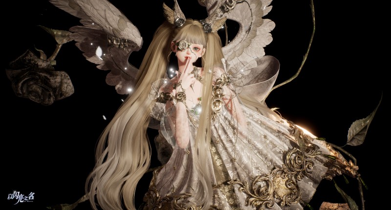 金箔与石膏的缝隙间,细小嫩芽会从裂纹中悄悄探出头,呼吸间嫩叶会顺着骨架弧度缓缓飘落,落地瞬间化作细碎荧光消散。这种石膏的静态骨架与动态生命力的组合,让翅膀不再是单纯的视觉装饰,更像一个微型的重生现场,精准呼应着即使飞翔的能力被时间凝固,生命的希望仍能从残破骨架中生生不息萌发的核心设计理念。