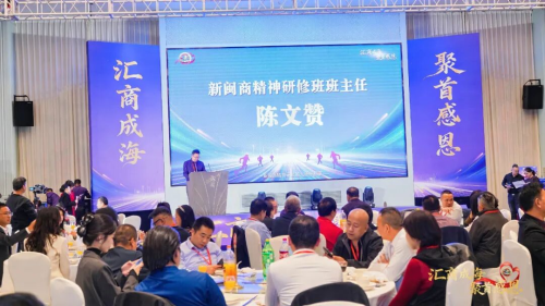 在全体与会者热烈的期待中,新闽商精神研修班班主任陈文赞老师登台致辞,以深耕商学教育多年的专业视角,系统阐释了新闽商精神的传承脉络与时代价值。