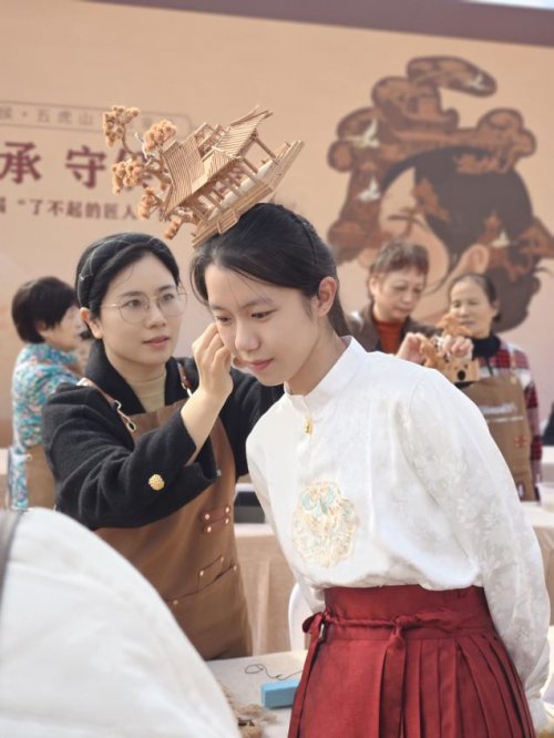 来自厦门的年轻游客林先生手持集满印章的打卡册,在软木画体验区说道:“我是越野跑爱好者,也是传统文化迷。这次活动把运动和文创结合得太巧妙了!跑完步过来逛逛,既能静下心来欣赏匠人创作,又能动手体验马面裙穿戴、软木画头饰制作,打卡动线设计得很有趣。尤其是那个非遗IP主题展,用很潮的方式呈现传统手艺,我们年轻人都愿意拍照分享——原来非遗也可以这么‘酷’!”