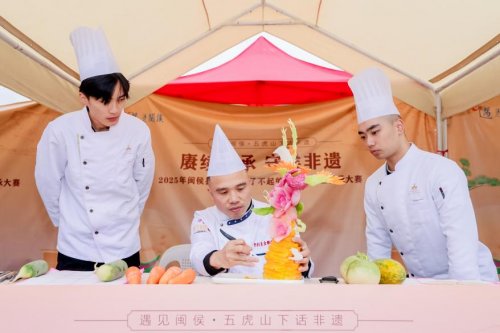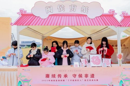 竞技之外,大赛更致力于打造可触、可感、可参与的活态非遗空间。主会场内,非遗集市 人潮涌动,非遗剪纸互动、青红酒、果蔬雕刻、拌面扁肉等三十个非遗及特色产品摊位,让市民游客一站式购齐“闽侯味道”与“闽侯匠心”。