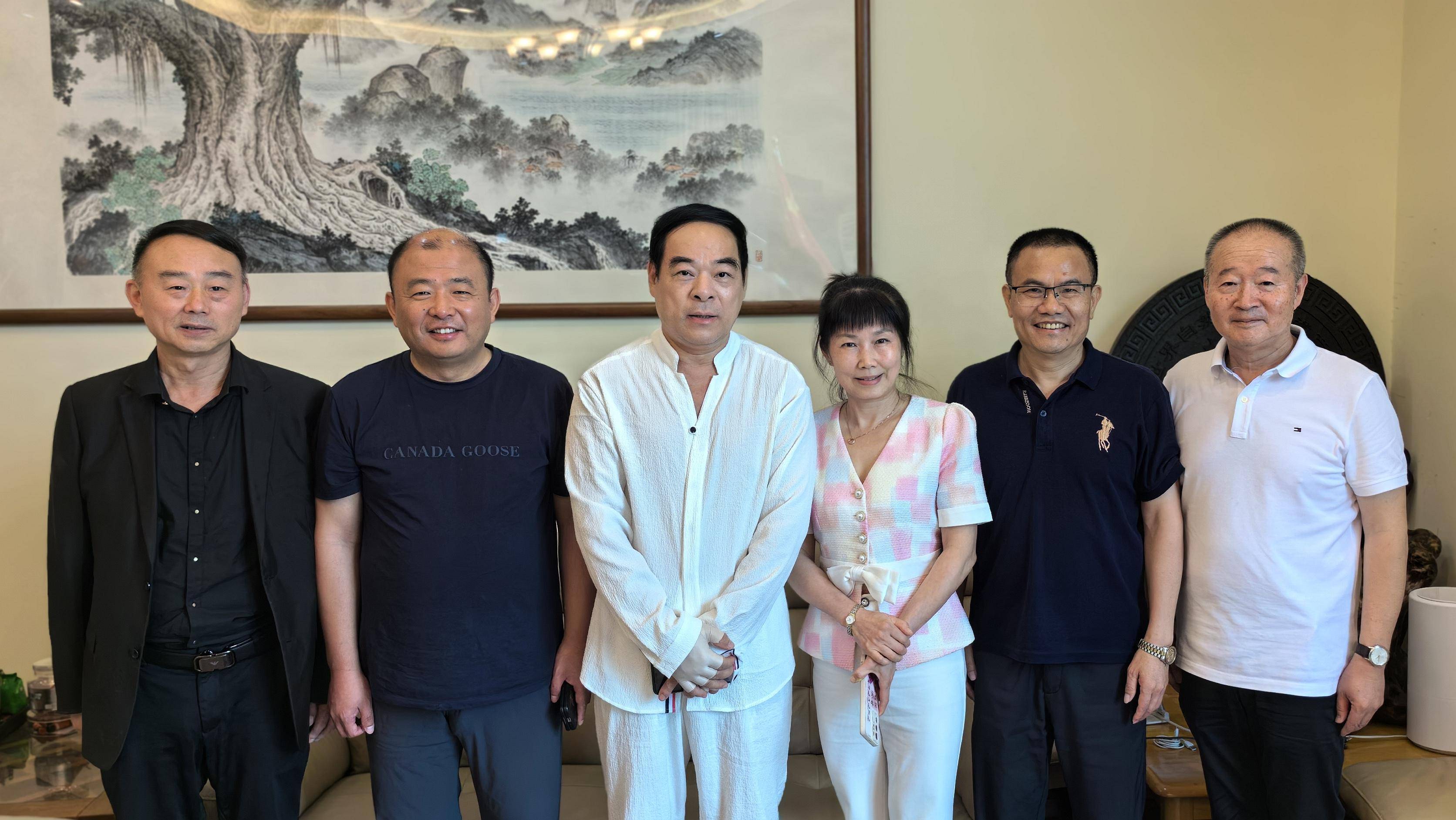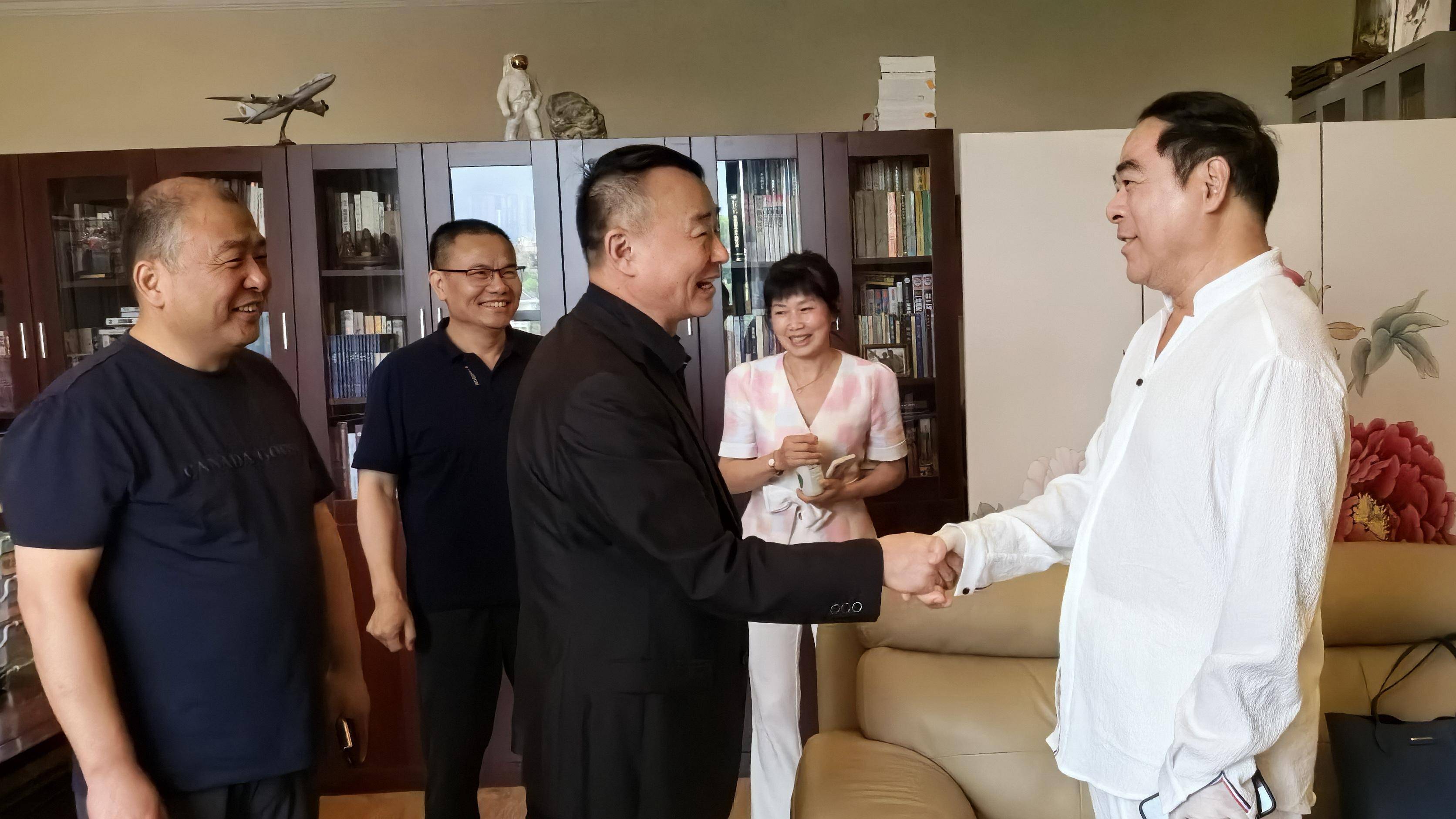 福建省扑克牌协会荣誉主席 中国防赌反赌形象大使郑太顺(中)会见中国社会艺术协会侨牌专委员会负责人