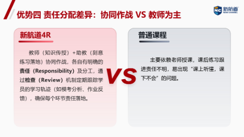 5. 教学过程差异:教学过程透明可控,对每个成员有明确责任。