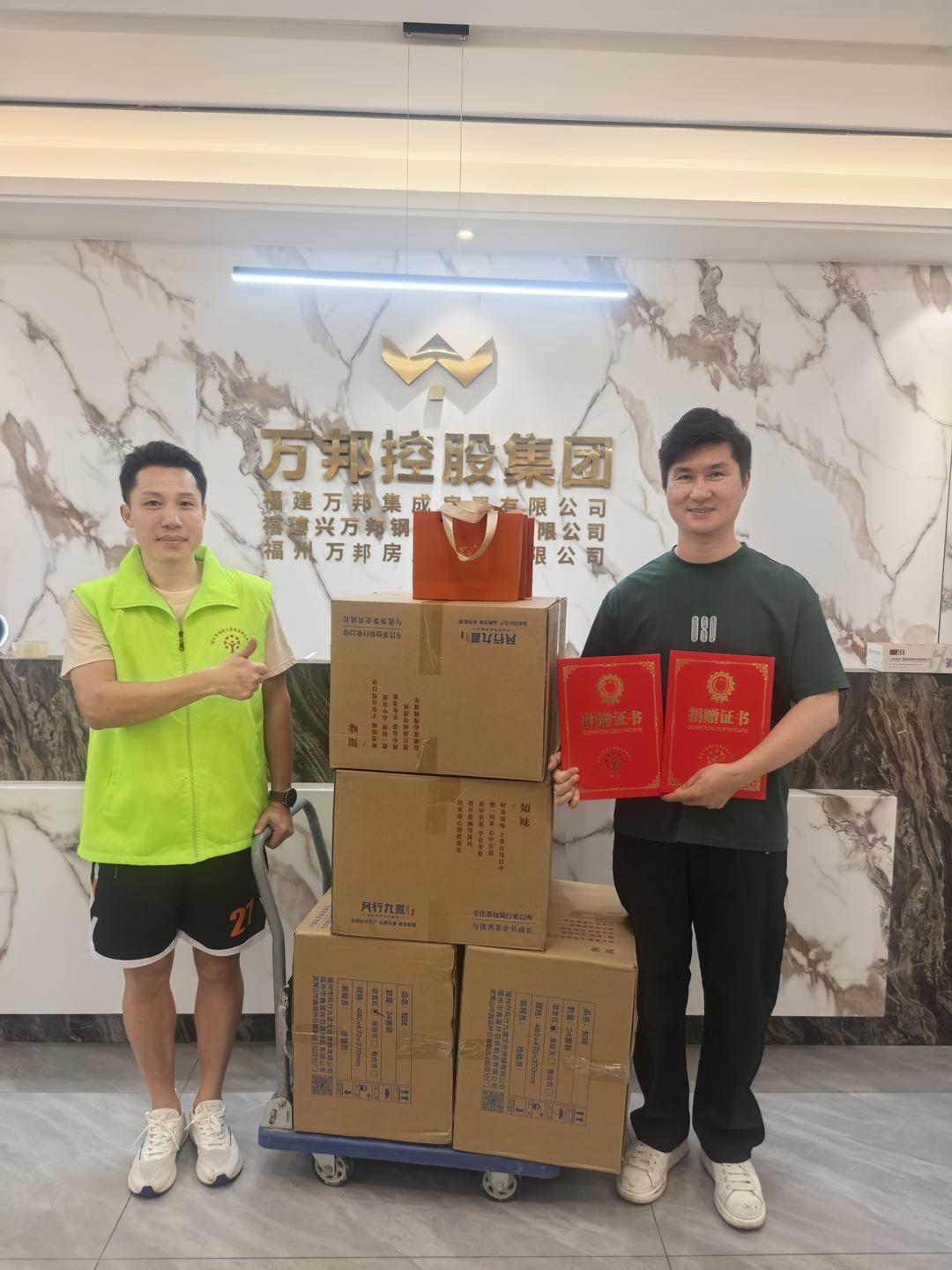 6月7日福延公益志愿者将福建万邦活动房有限公司认购的100盒建瓯御苑供茶送达福建省万邦控股集团。并颁发捐助证书表示感谢。