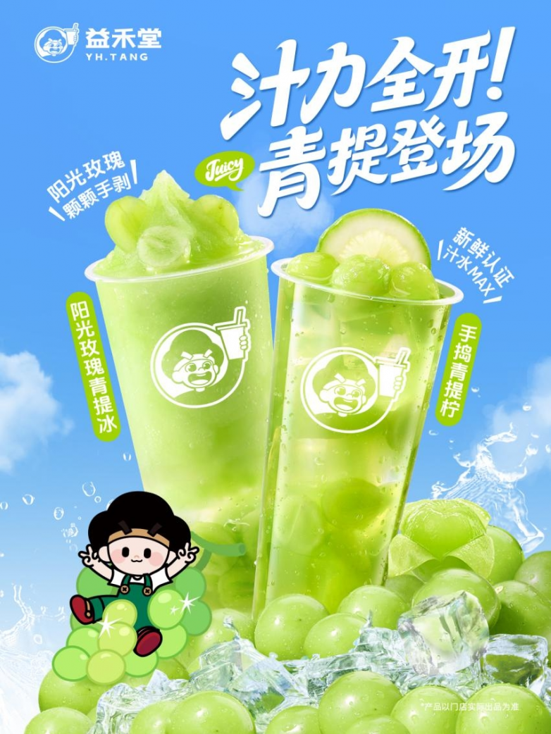 承载市场厚爱,升级诚意满载,今夏“青”凉风暴已来袭!益禾堂阳光玫瑰青提冰与手捣青提柠现已于全国门店同步热售!速速奔赴附近的益禾堂,解锁这份源自当季阳光玫瑰的爆汁脆甜魅力,体验冰沙沁透与手捣鲜活的双重“青”爽,让升级王者相伴,制胜炎炎夏日!