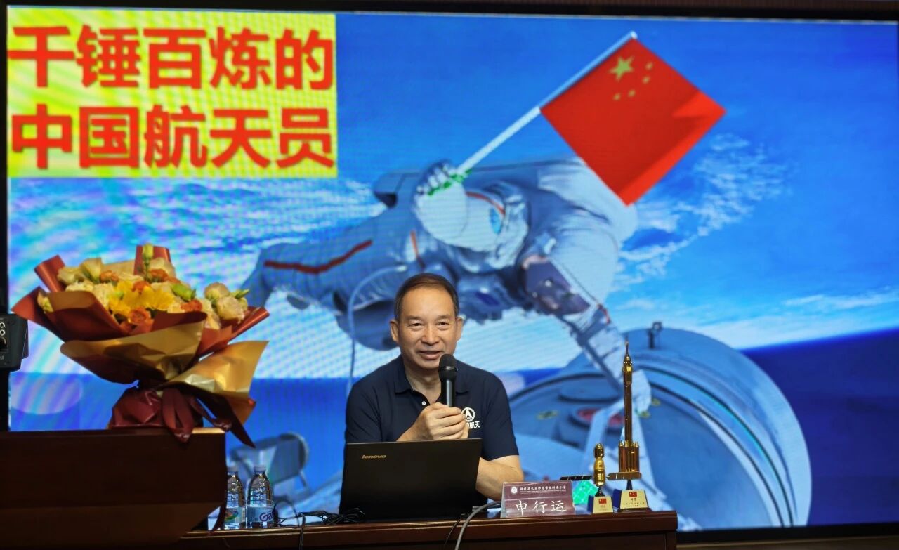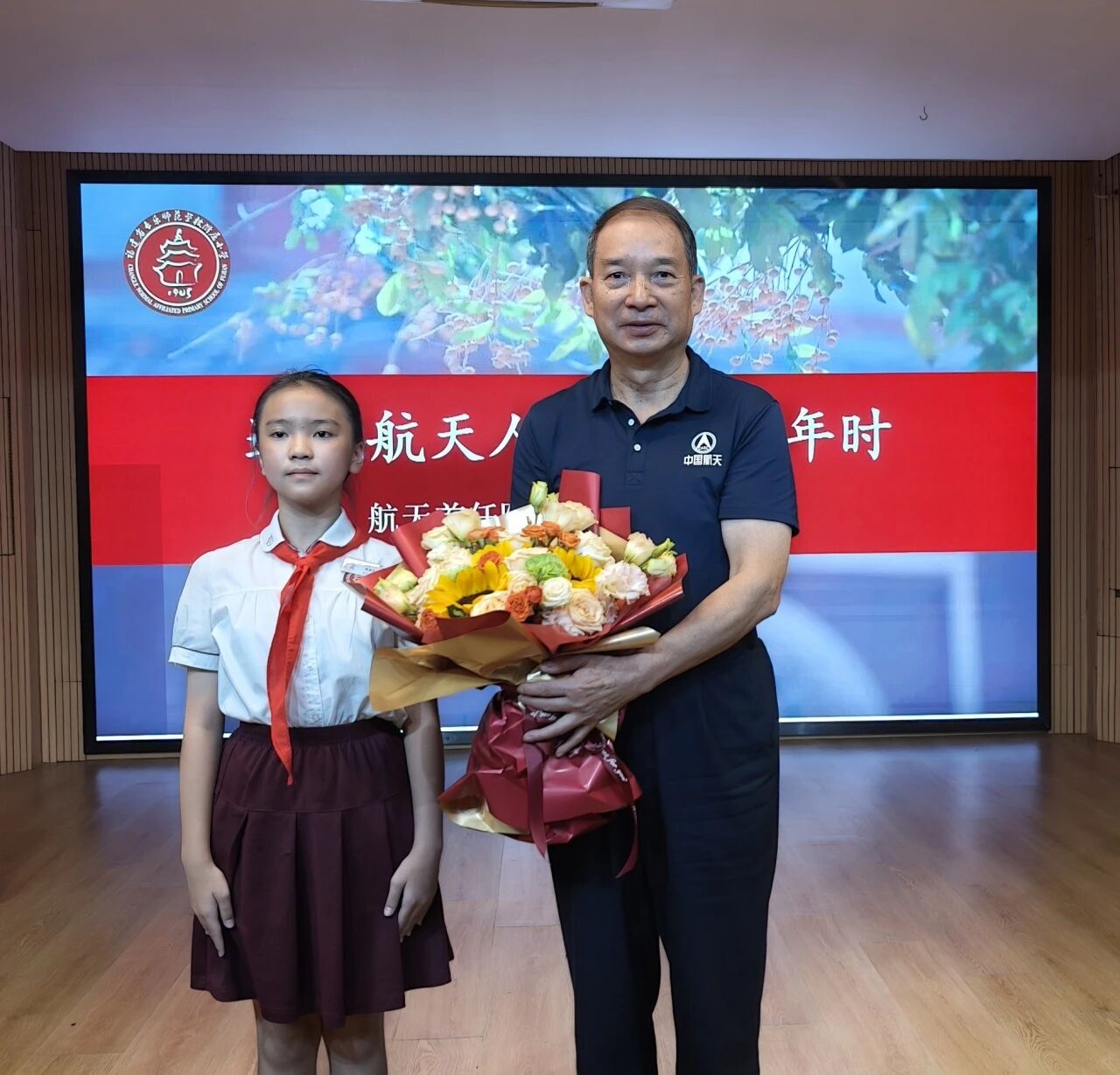 二十二载星辰流转,初心如炬照亮苍穹。2025年10月15日,在神舟五号载人飞船成功飞天二十二周年的纪念日,长师附小特别邀请中国人民解放军航天员大队首任大队长申行运莅临校园,为百余名师生带来一场高燃启智的航天科普讲座,引领学子仰望星空,开启一扇通往浩瀚宇宙的梦想之门。