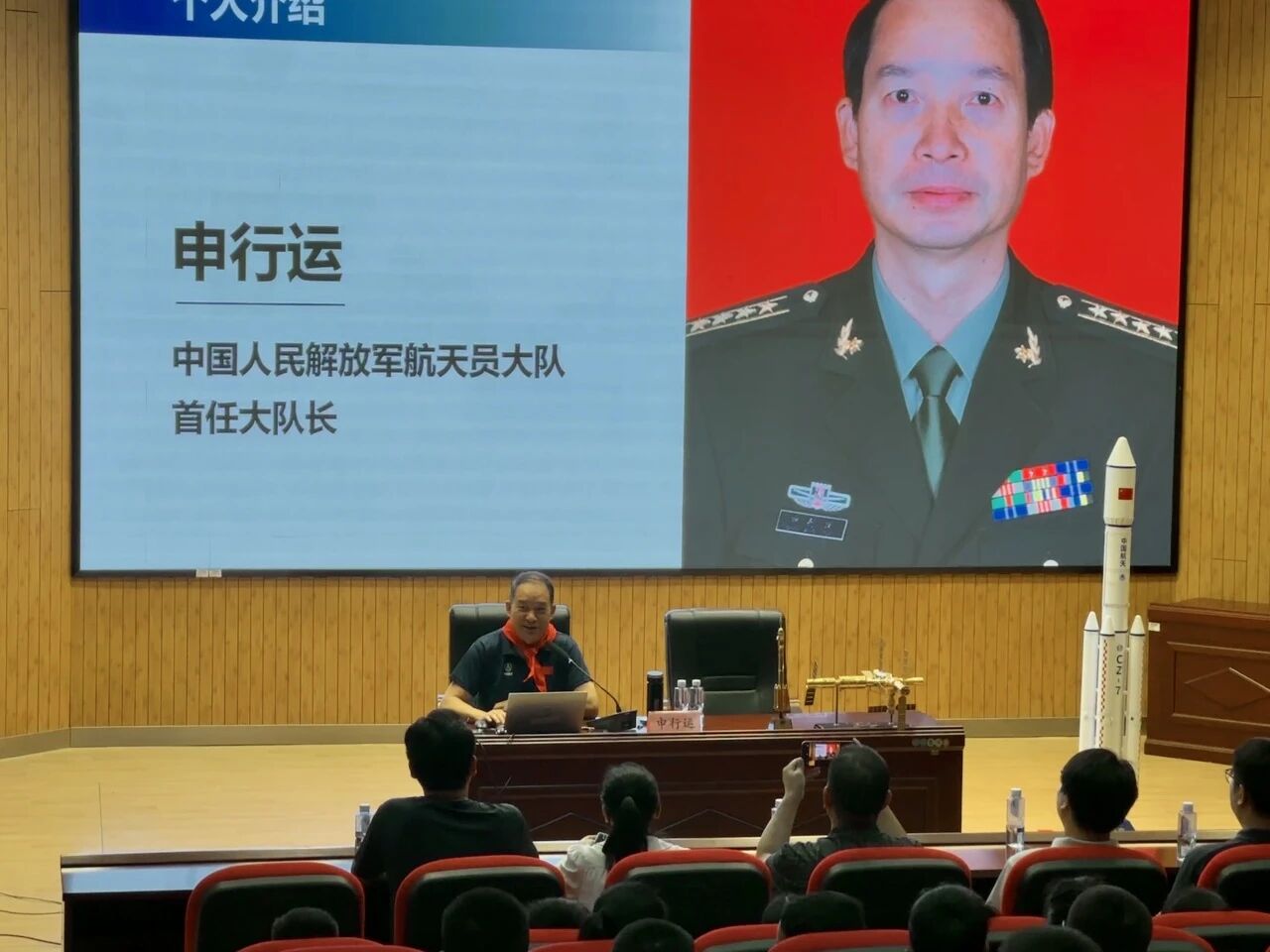 讲座中,申行运大队长以亲身经历为笔,以航天发展史为卷,将中国航天从“东方红”划破天际到“神舟”遨游太空的壮阔历程娓娓道来。