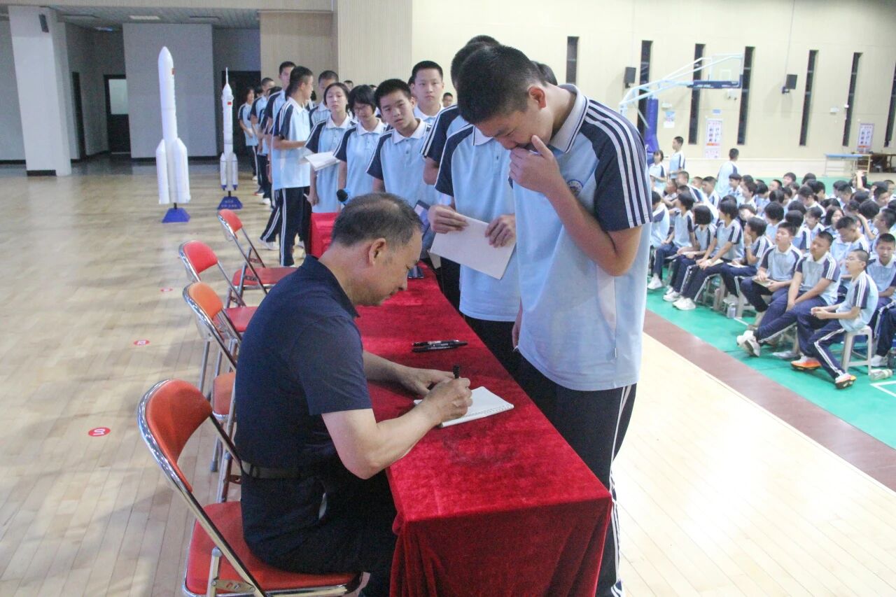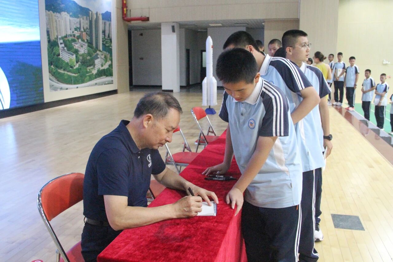 讲座结束后,师生们意犹未尽,申行运大队长留在台上,耐心地为排队等候的师生签名,有的学生递上笔记本,有的拿出提前准备的航天主题纪念品,每一个签名都饱含着对航天精神的敬意,每一张笑脸都洋溢着与专家近距离交流的激动。